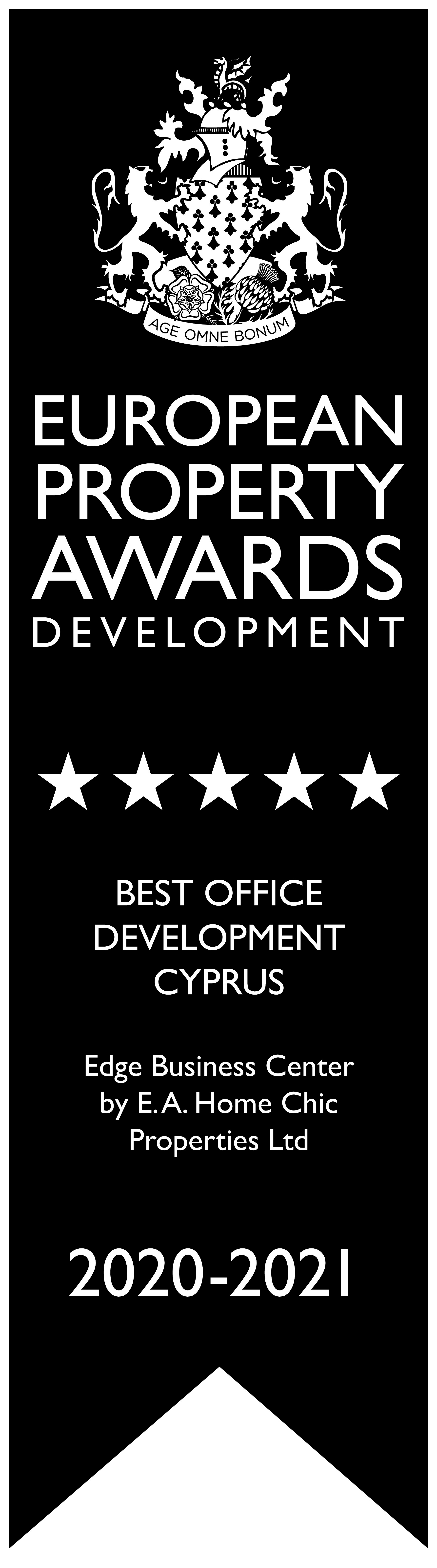 We are thrilled to announce that E.A Home Chic Properties Ltd has been honored with the “Best Office Development Cyprus” award for 2020-2021 by the prestigious European Property Awards Development. Our exemplary project, Edge Business Center, has been recognized for its outstanding contribution to the real estate landscape. This accolade underscores our commitment to excellence, innovative design, and unwavering dedication to delivering top-tier developments. We extend our gratitude to the European Property Awards for this esteemed recognition and look forward to continuing our pursuit of excellence in the realm of real estate development.